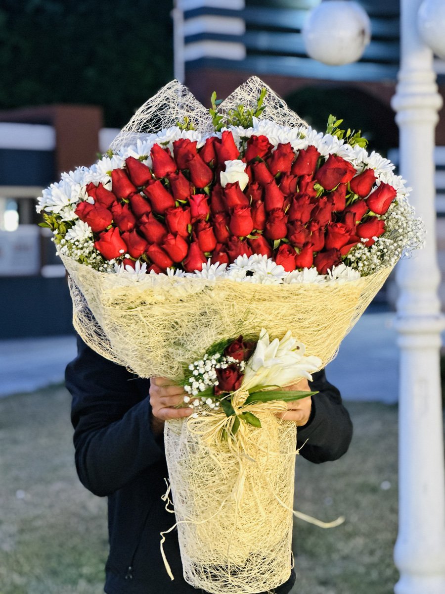 Sevdiğinize “41 Kere Maşallah” demenin en görkemli hali! Çiçek dünyasında derin bir bağlılığı ve kusursuzluğu simgeleyen 41 adet canlı kırmızı gülü, masumiyetin elçisi bembeyaz papatyalarla (krizantem) bir hale gibi çerçeveledik. Doğallığı zirveye taşıyan özel hasır/file ambalajı ve kucaklara sığmayan devasa hacmiyle bu tasarım; Adana’da evlilik tekliflerini, kız isteme merasimlerini veya en büyük sürprizleri unutulmaz kılmak için usta ellerde hazırlandı.