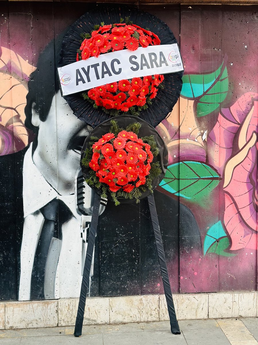 Adana cenaze çelengi, siyah sargılı iskelet üzerine kırmızı çiçeklerle hazırlanmış 2 katlı taziye ve merasim çelengi.