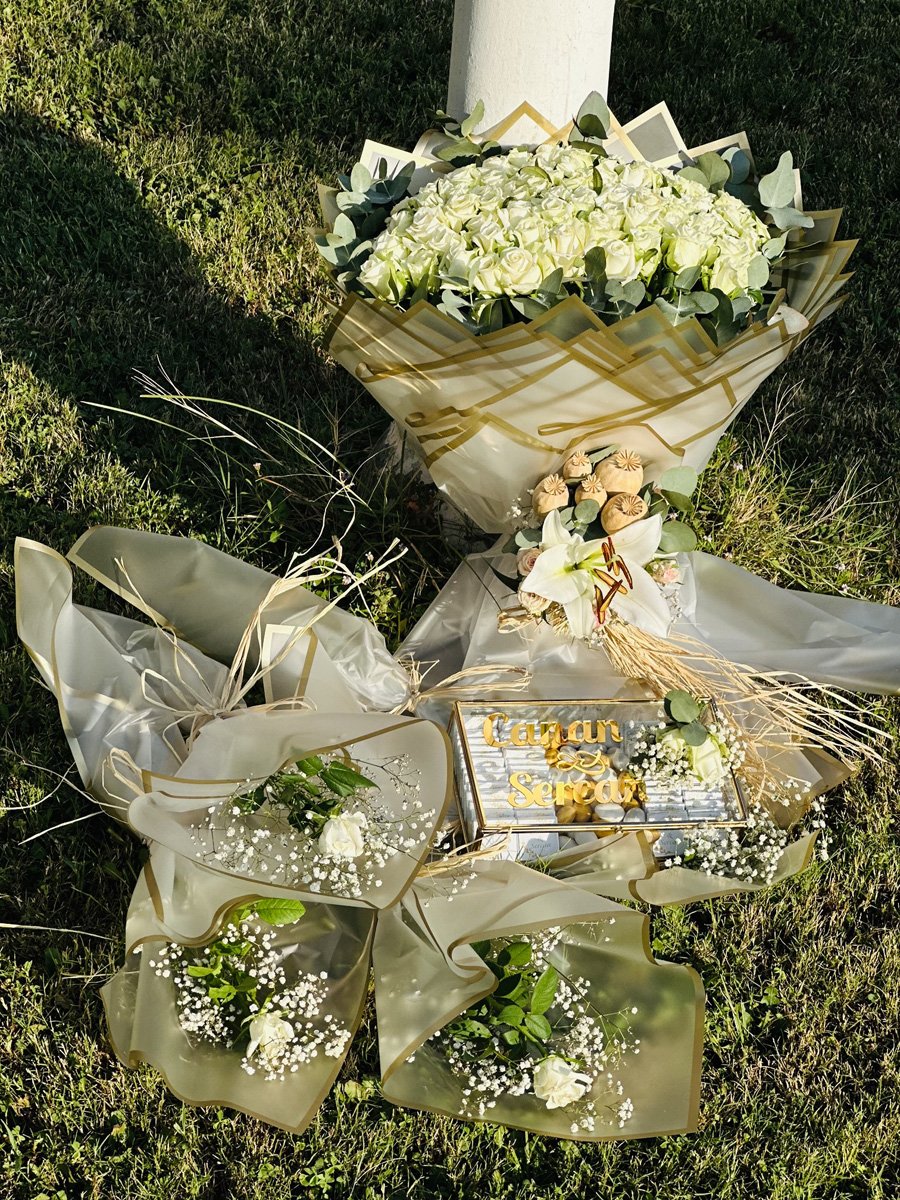 En özel “Evet” için ihtiyacınız olan her şey bu sette! Masumiyetin simgesi lüks beyaz gül buketi ve ağızları tatlandıracak premium çikolatalarla dolu gösterişli gondol… Adana’da kız isteme ve söz merasimlerinin vazgeçilmez ikilisini, birbirine tam uyumlu ve göz alıcı bir tasarımla tek bir pakette sunuyoruz.
