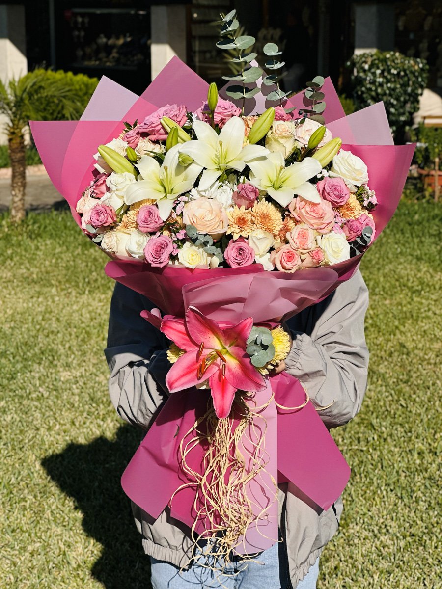 Adana atölyemizde siparişinize özel; lilyumların kokusunu ve buketin devasa formunu en taze haliyle koruyacak şekilde titizlikle hazırlanır.